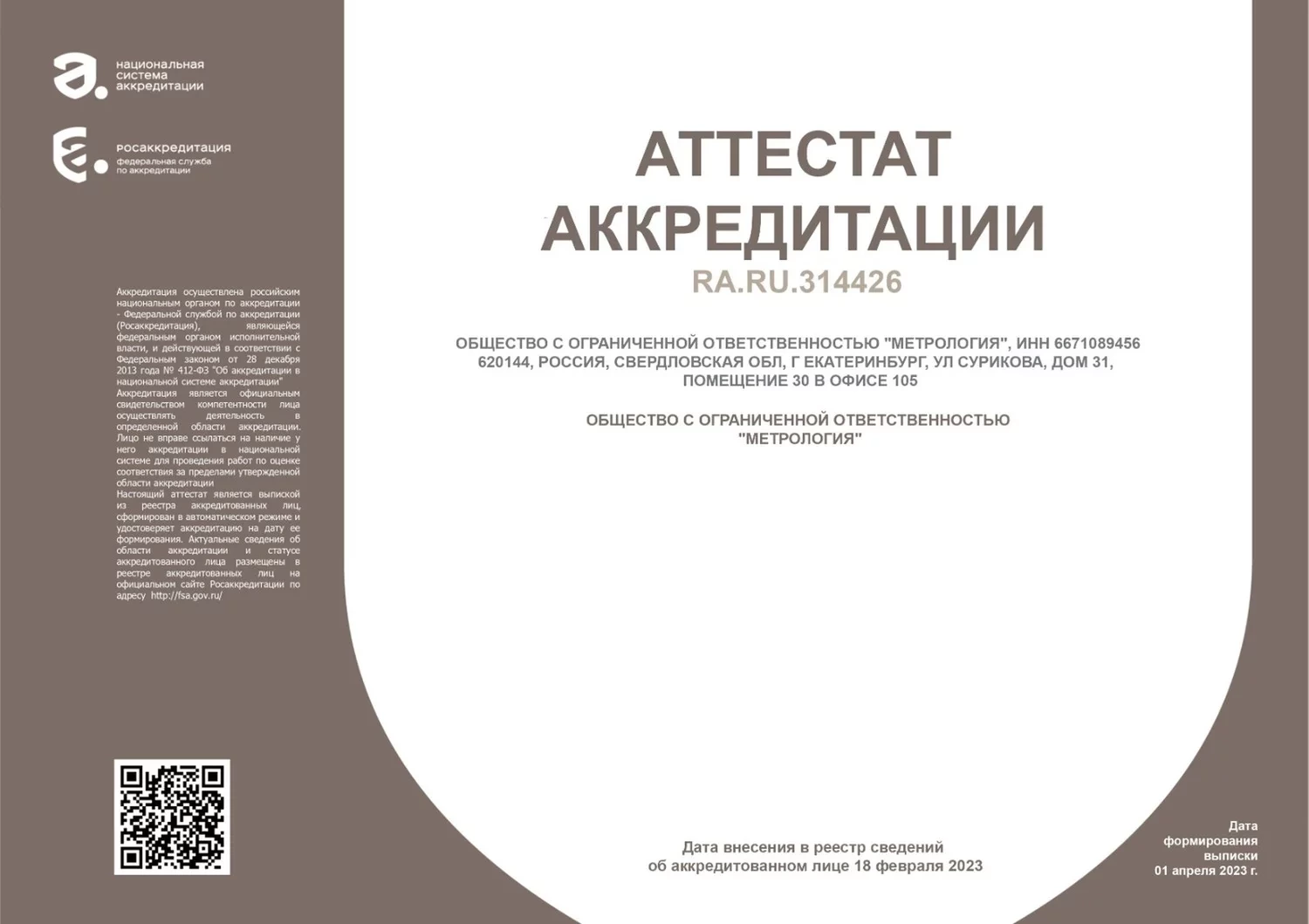 АТТЕСТАТ АККРЕДИТАЦИИ RA.RU. 314426